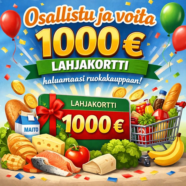 👉 Osallistu arvontaan ja hyödynnä tilaisuus voittaa 1000 € lahjakortti haluamaasi ruokakauppaan.
